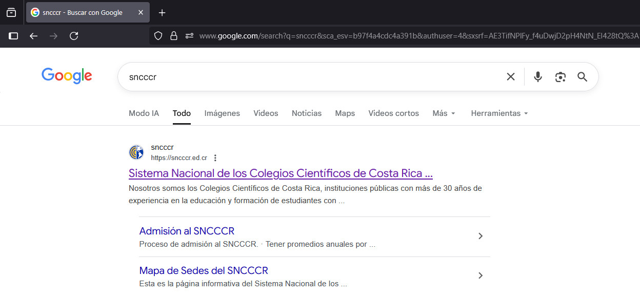 Si no aparece, puedes escribir la URL www.sncccr.ed.cr en el navegador que usas.